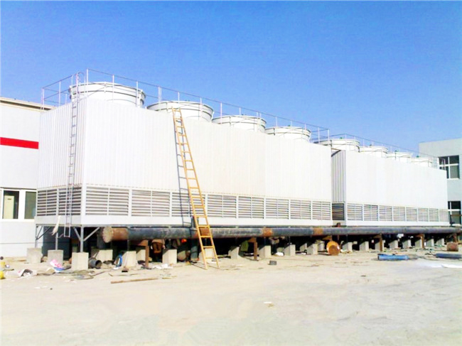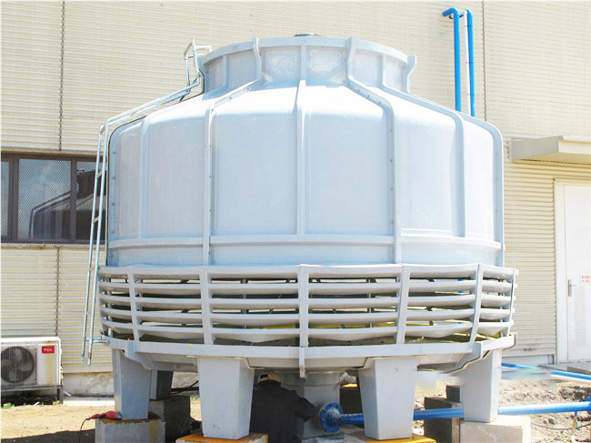 玻璃钢冷却塔由冷却塔体、风机组件、电机组件、深水盘、溅水装置、布水装置、管道系统、支架、供货零部件间的连接紧固件、密封垫片及其他的零件和材料组成。